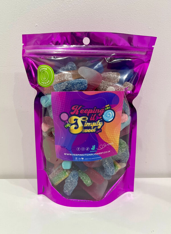Juicy Berries, Passionfruit Slices, White Mice, Green Frogs, Strawberry & Cream Slices, Fizzy Watermelon Slices, Foam Bananas, Strawberry Twist Hearts, White Chocolate Jazzie Stars, Psycho Mice, BUBS Banana & Caramel Ovals, Jelly Filled Snails, Jelly Filled Brains, Fizzy Blue Raspberry Bottles, Foam Shrimp, Fizzy Peach Rings, Giant Strawbs, Chocolate Jazzies, Mini Eggs, Jelly Filled Turtles, Watermelon Slices, Fizzy Pineapple Rings, Rhubarb & Custards, Cola Bottles, BUBS Mini Sour Skulls, Fizzy Watermelon Bottles, BUBS Cool Melon Skulls, Fizzy Cola Bottles, Twin Cherries, Blue Raspberry Slices, Sour Apple Rings, BUBS Cola Skulls, Sour Candy Shocks, Fizzy Bones, Black & Red Berries, BUBS Raspberry & Blueberry Foams, BUBS Watermelon Foams, Fizzy Sour Tongue Painters, Fizzy Rainbow Bottles, BUBS Strawberry Cheesecake, Bubblegum Mermaids, Fizzy Blue Babies, BUBS Sour Raspberry & Lemon Skulls, Sour Kiwi Slices, Jelly Blueberries, Fizzy Foam Strawberries, Fizzy Cherry Cola Bottles, Tongue Painters, BUBS Sour Tutti Frutti Rombs, Strawberry Puffs
